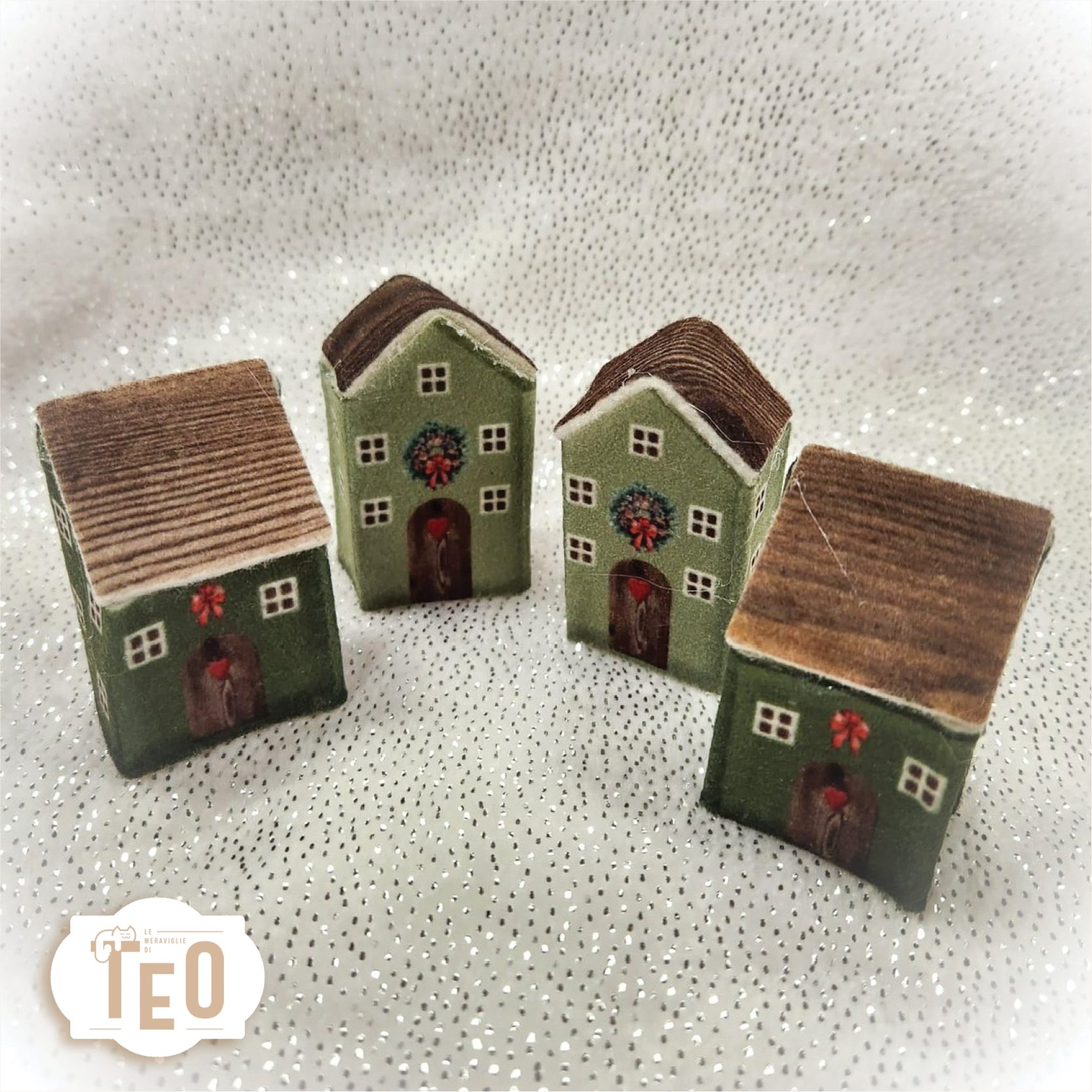 Dolcissime casette in feltro 3 mm pretagliate e da incollare, perfette per creare piccoli villaggi natalizi o decorazioni romantiche .