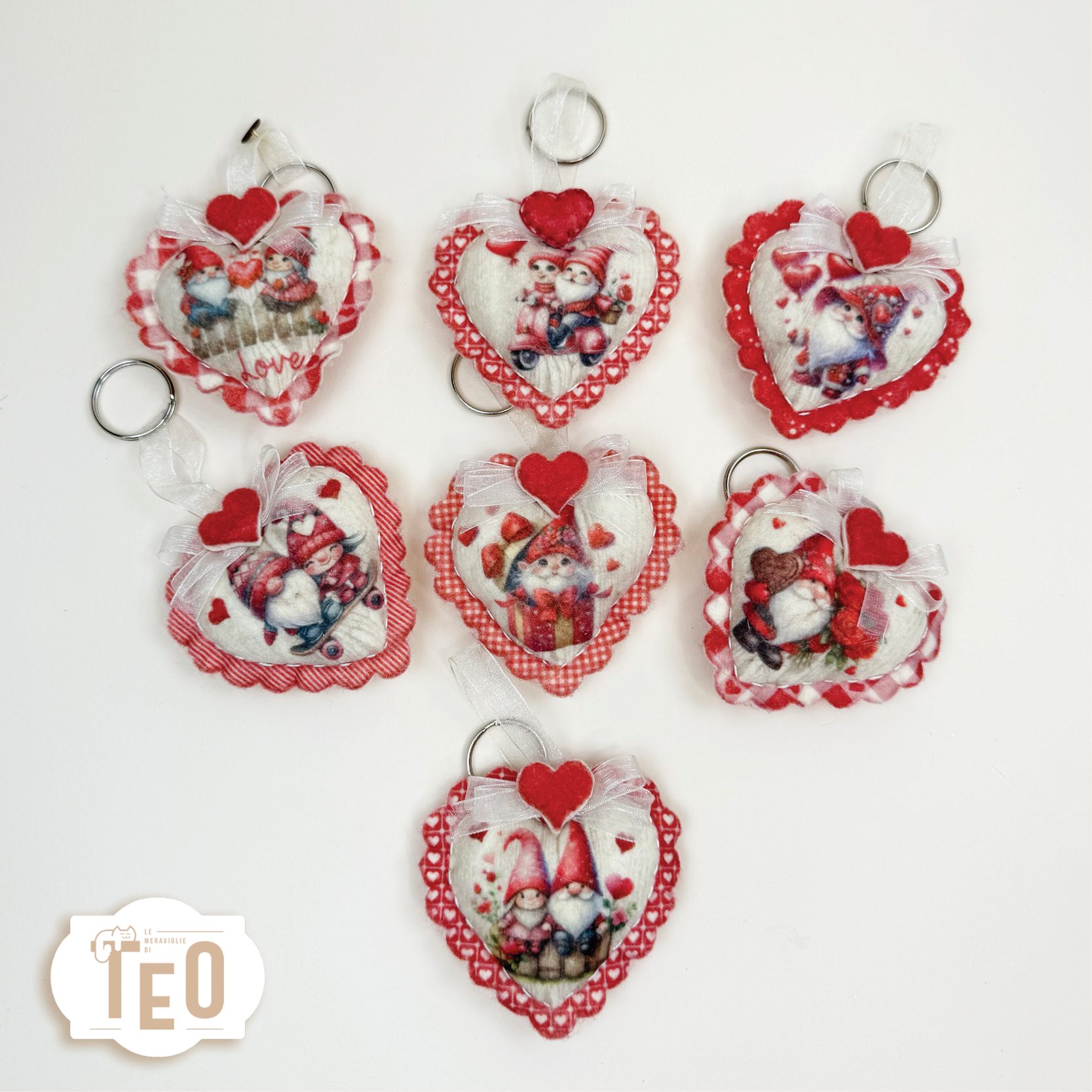 Un’esplosione di tenerezza per chi ama l’amore in ogni sua forma! Questo pannello in pannolenci stampato contiene dolcissime illustrazioni di gnomi innamorati racchiusi in cuori decorati, ideali per creare portachiavi, decorazioni, pensierini di San Valentino o bomboniere handmade.