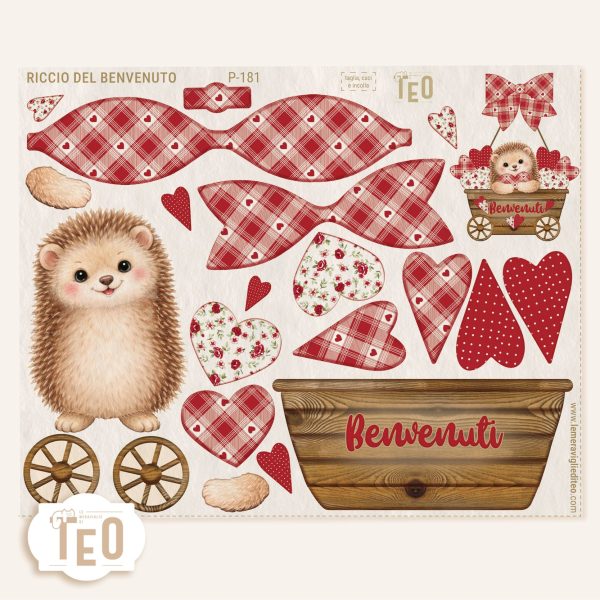 Il simpatico riccio circondato da cuori in fantasie romantiche e dettagli in stile country diventa il protagonista ideale per fuori porta e decorazioni handmade dal gusto caldo e familiare.
