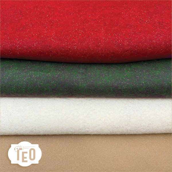 Un pannolenci speciale impreziosito da un delicato glitter oro perfetto per creazioni natalizie eleganti,ย luminose e raffinate