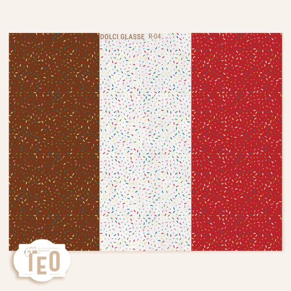 Pannello creativo 50×40 cm pannolenci stampato con fantasie effetto glassa al cioccolato, alla panna e al lampone, pensato come retro per i nostri pannelli creativi.