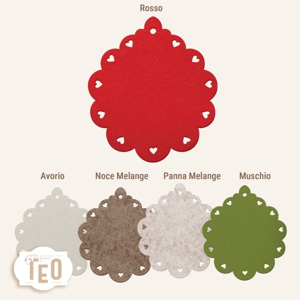 Sagoma rotonda decorativa in feltro 3mm con bordi smerlati e cuoricini traforati