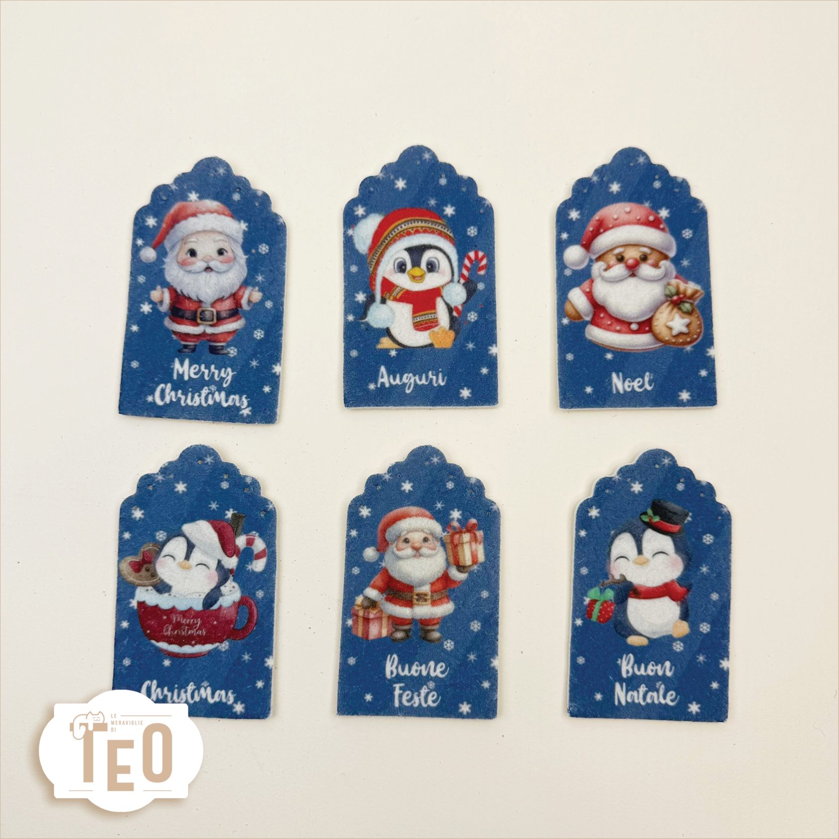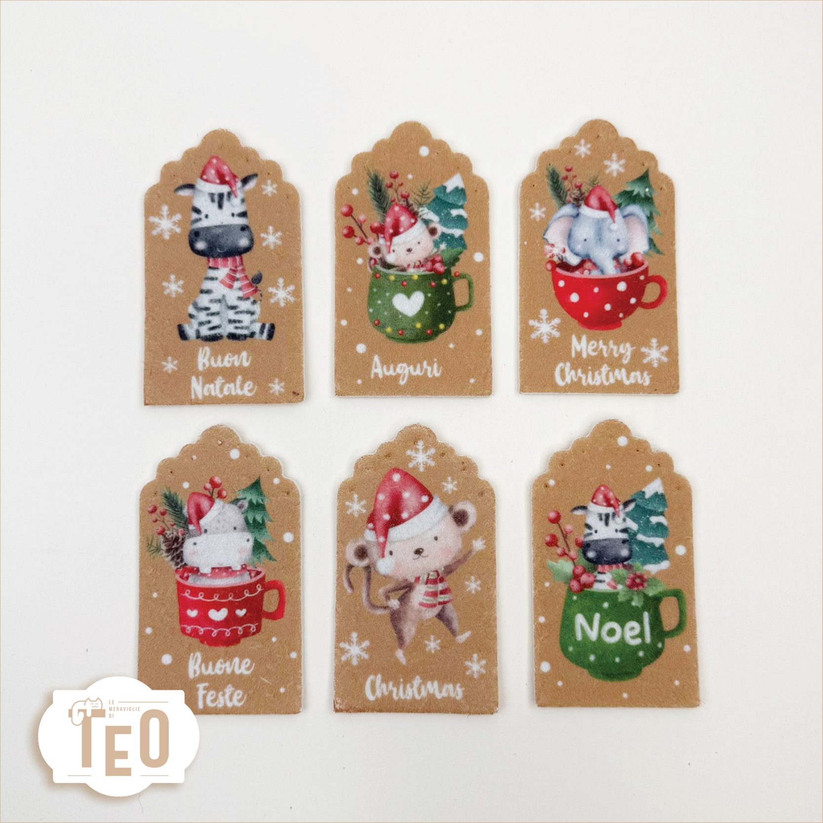 Ogni soggetto รจ impreziosito da dolci illustrazioni natalizie e da brevi scritte festive, pensate per accompagnare i tuoi regali con semplicitร  ed eleganza.